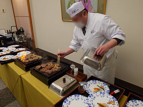 特に印象的だったのは、職人技の結晶ともいえる「貴賓室」の見学と「料理の鉄人」に出演された料理長によるライブ感あふれる、味・彩り・ボリュームの三拍子がそろった夕食です。